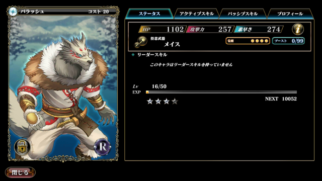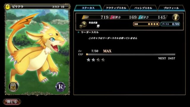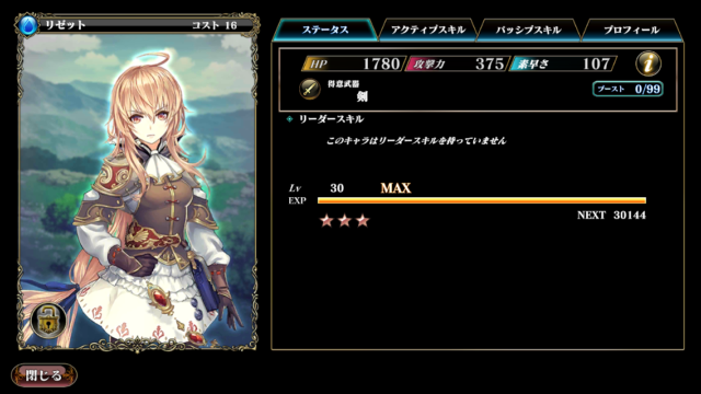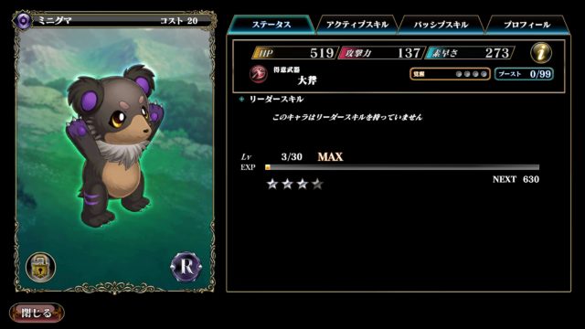 ・ストーリー序盤でブロックを使えるキャラは貴重なので、ある程度手持ちが揃ってくるまでは、パーティのブロック要員として使えるキャラクターです。
