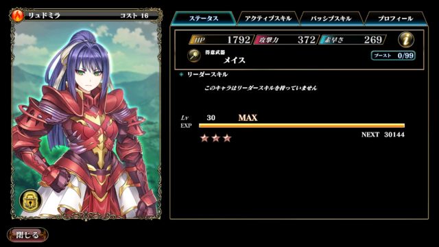 ・リュドミラは、最初に仲間になる「ブロック」持ちのキャラクターです。