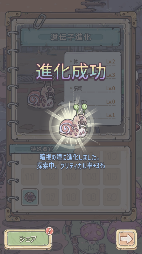 遺伝子進化をすることで、でんでんの姿がグロかわな姿に変化していきます!